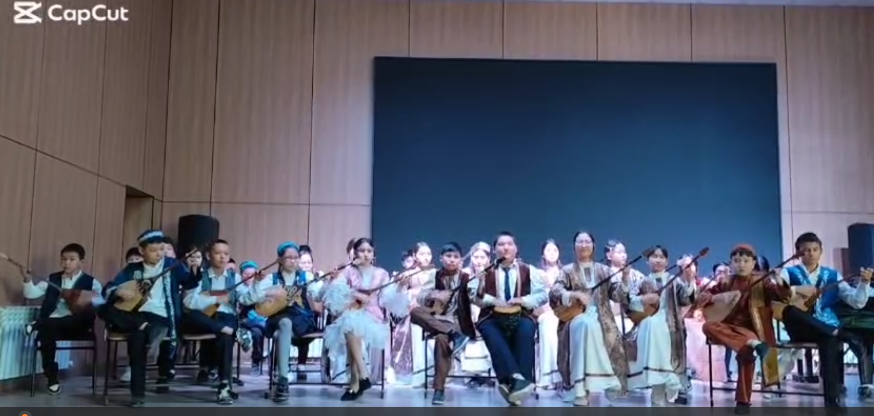 В рамках челленджа «100 домбристов исполняют кюи казахских композиторов» юные домбристы исполнили кюй Курмангазы «Балбырауын», наполнив зал духом национальной гордости и единства.